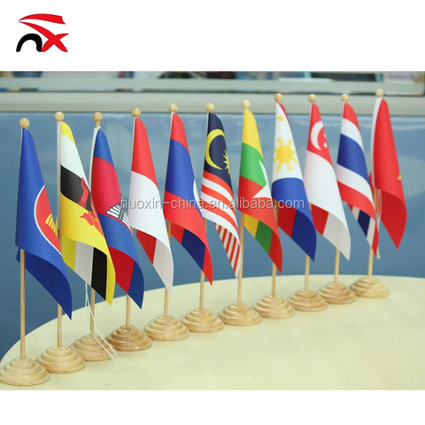 Fábrica al por mayor Mini mesa escritorio banderas Venta caliente personalizado todos los países pequeñas banderas de escritorio banderas de mesa de colores vivos con poste